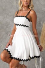 Aimie Solid Color Wavy Lace Sexy Suspender Mini Dress