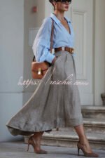 All Round Comfort Linen Blend V-neck Balloon Sleeve Loose Blouse