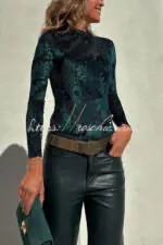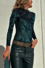 Antarey Velvet Mesh Unique Pattern Long Sleeve Stretch Bodysuit