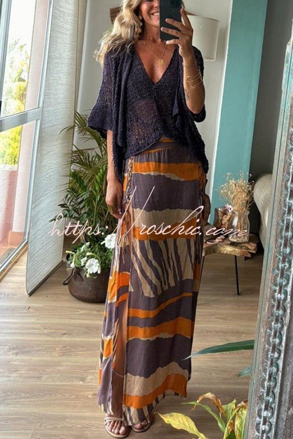 Bendita Colorblock Print Elastic Waist Side Lace-up Slit Maxi Skirt