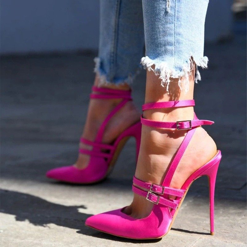 Black & Blue T Strap Sandals Peep Toe Stiletto Heels with Flowers