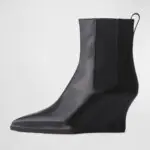 Black Closed Pointed Toe Wedge Heel Chelsea Ankle Boots for Women
