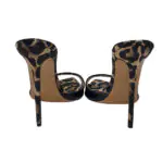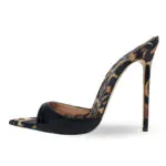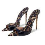 Black Patent Leather Animal Print Pointy Toe Heeled Mules Sandals