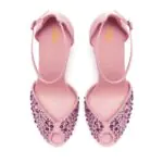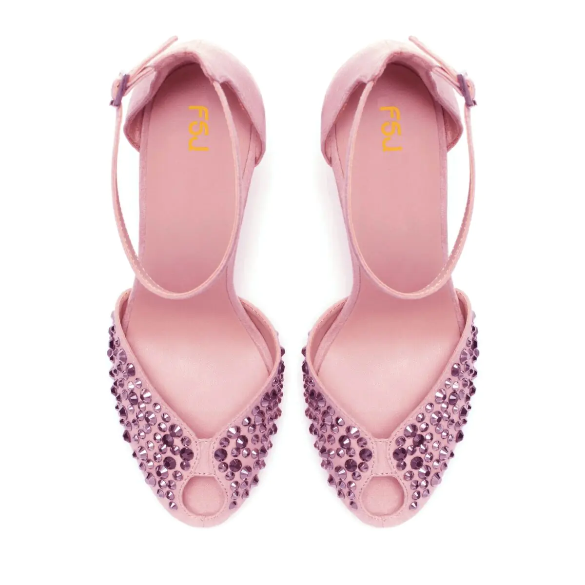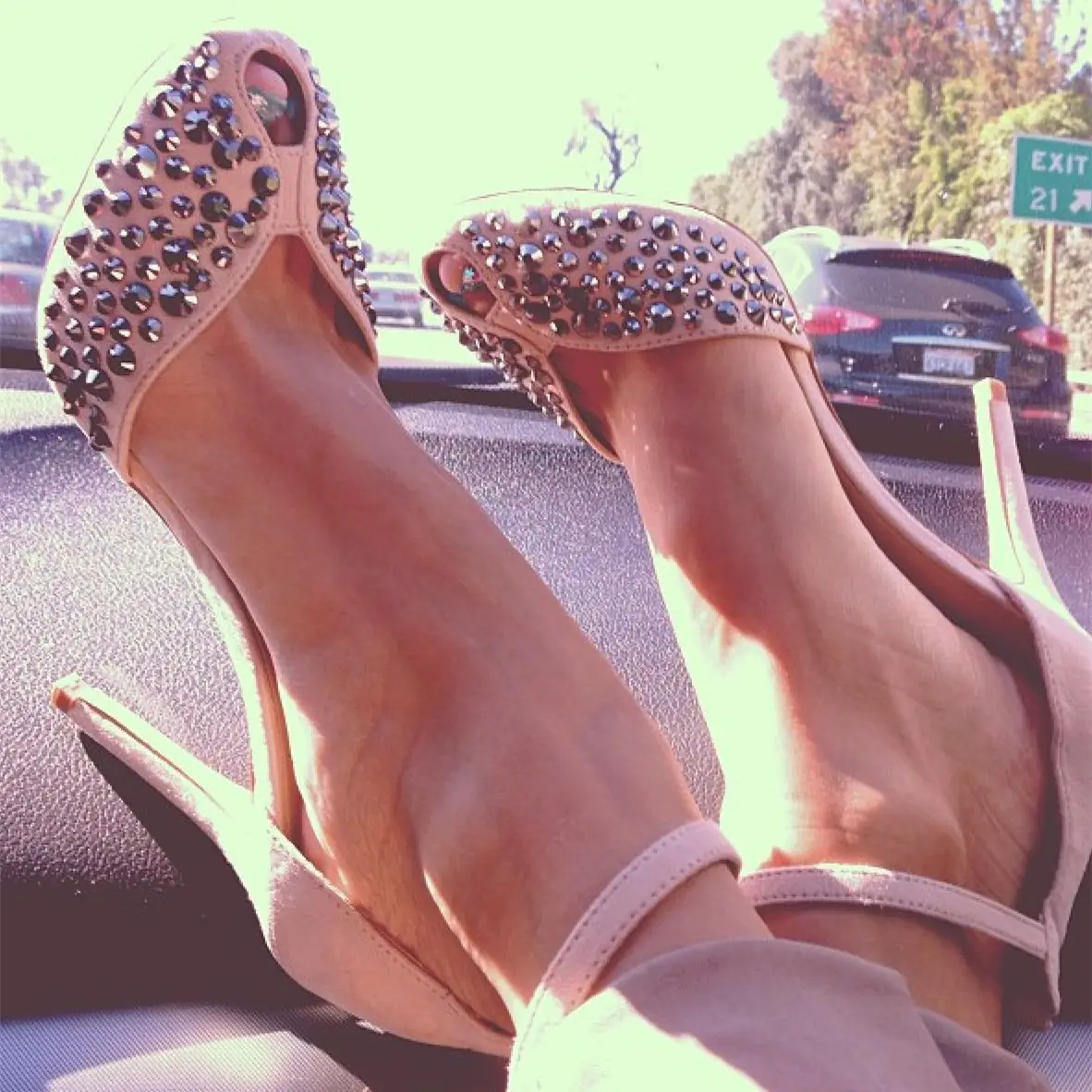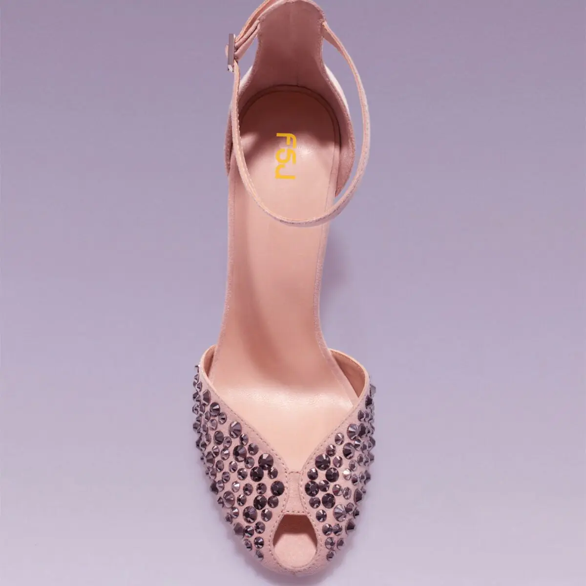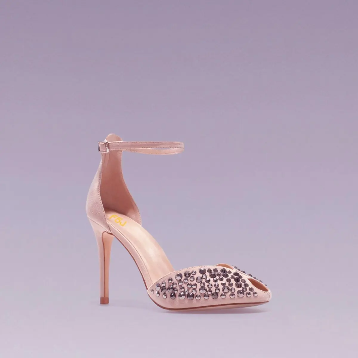 Blush Vegan Suede Studs Shoes Stiletto Heels Ankle Strap Sandals