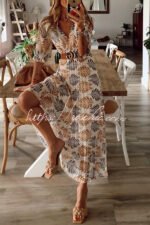 Botanical Print Pleated Long Sleeved Maxi Dress