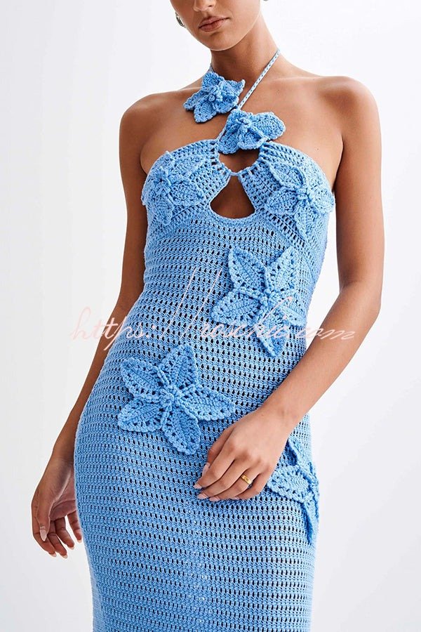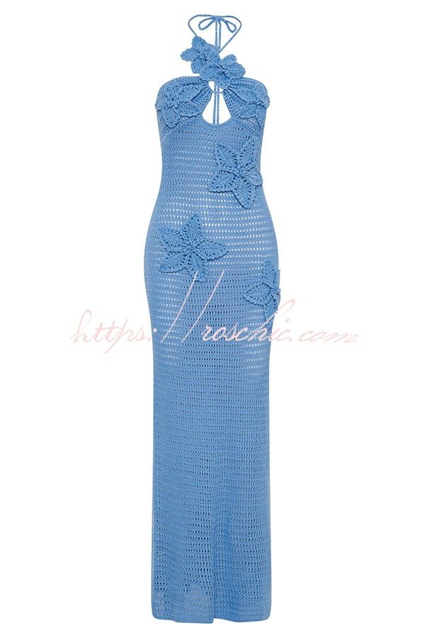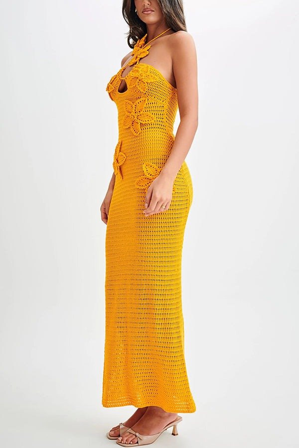 Call It Chic Knit Floral Crochet Halter Fishtail Hem Maxi Dress