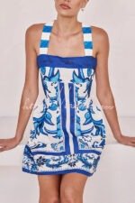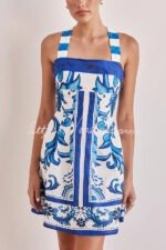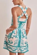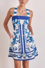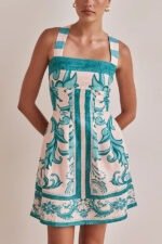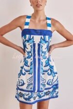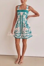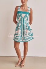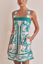Channeling Summer Linen Blend Unique Print Wide Strap Pocketed Mini Dress