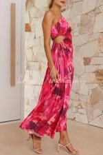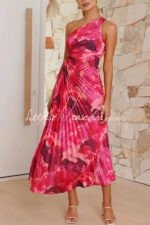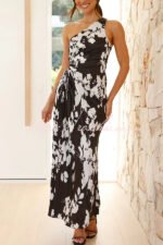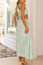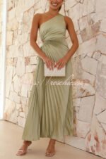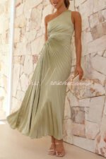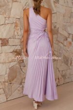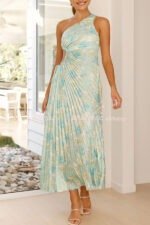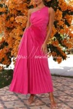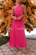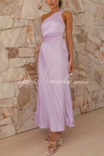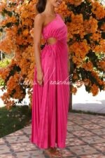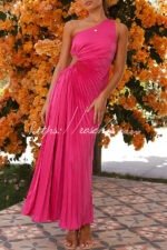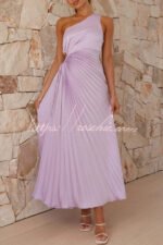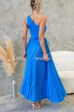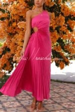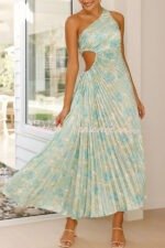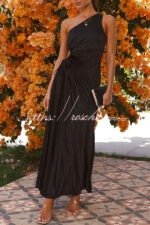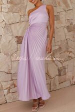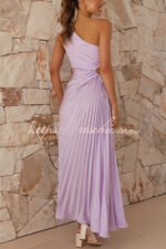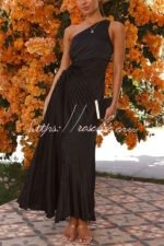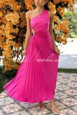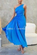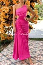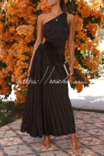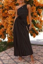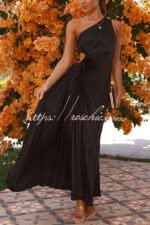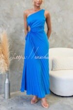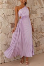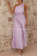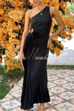 Charming One Shoulder Lace Up Cutout Pleated Maxi Dress