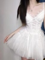 Chic A Line Spaghetti Straps White Lace Party Dress Birthday Dresses Birthday Outfits SD1216