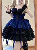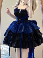 Chic Ball Gown Straps Royal Blue Organza Short Lolita Dresses Party Dress Birthday Outfits SD1194