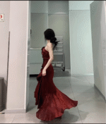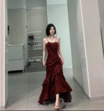 Chic High Low Spaghetti Straps Burgundy Long Birthday Dresses Birthday Outfits SD454