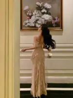 Classy Sheath Spaghetti Straps Floral Long Slit Prom Dresses Birthday Outfits Evening Gown SD1055