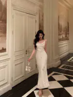Classy Sheath Spaghetti Straps Ivory Chiffon Prom Dresses Birthday Outfits Evening Gown SD1087