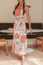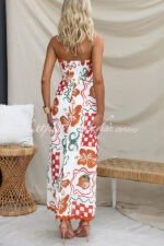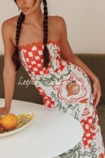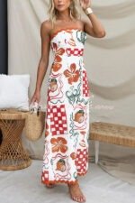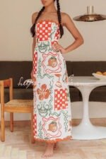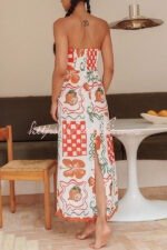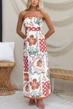 Cypress Unique Print Ric Rac Trim Back Smocked Strapless Maxi Dress