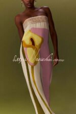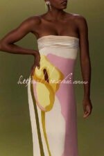 Dalva Calla Lilies Print Pleated Metallic Fabric Patchwork Bandeau Loose Maxi Dress