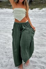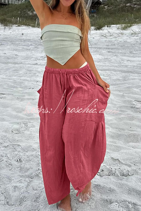 Diani Linen Blend Drawstring Waist Pocketed Loose Pants