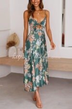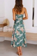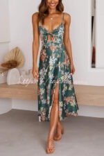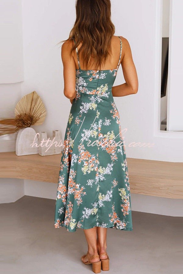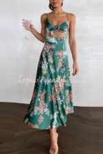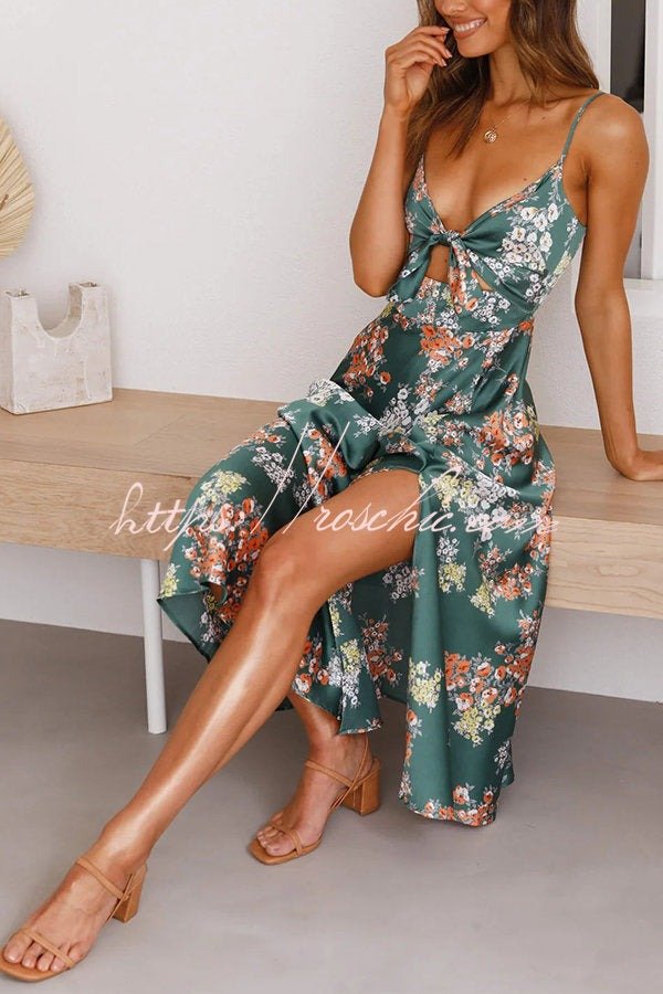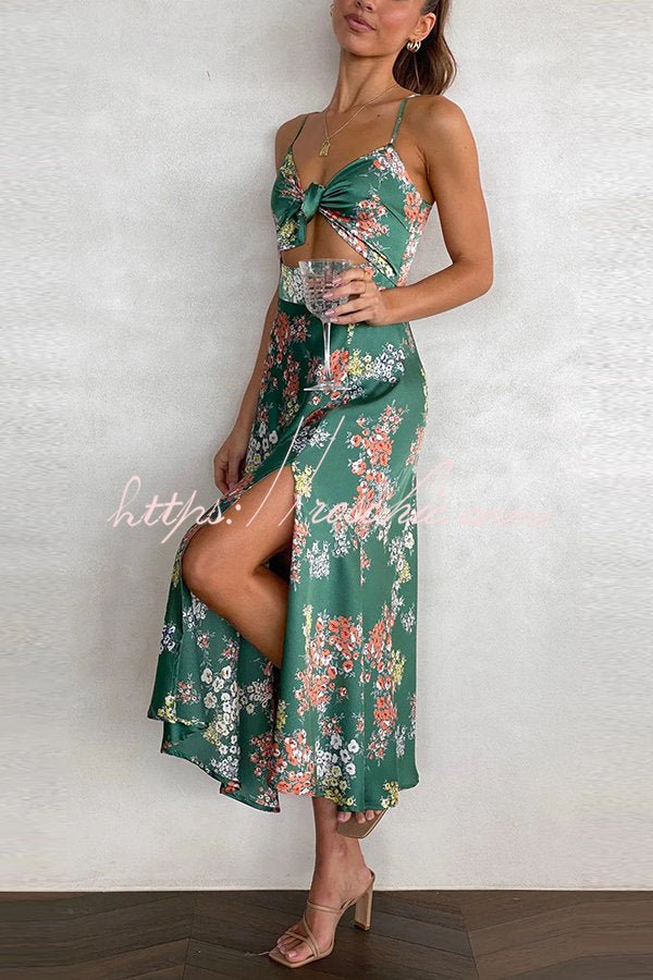 Dreamers Satin Floral Tie Up Slit Midi Dress