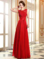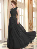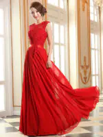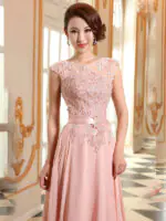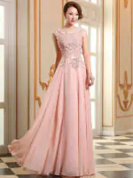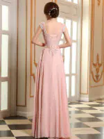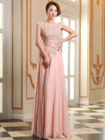 Eleagnt Evening Dresses Soft Pink Lace Applique Evening Dresses Chiffon Sleeveless Sash Floor Length Formal Gowns