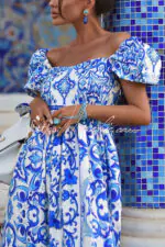 Enjoy The Adventure Printed Off Shoulder Puff Sleeve Maxi Dress