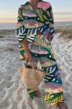 Exotic Fish Print Oversized Shirt and Elastic Waist Pocket Pants Set