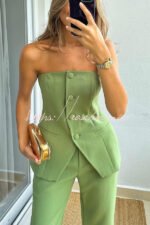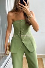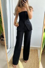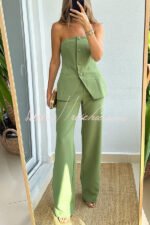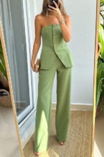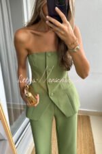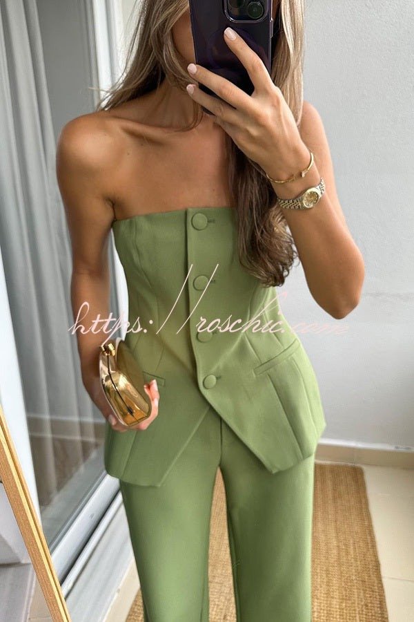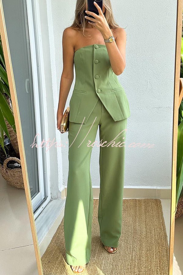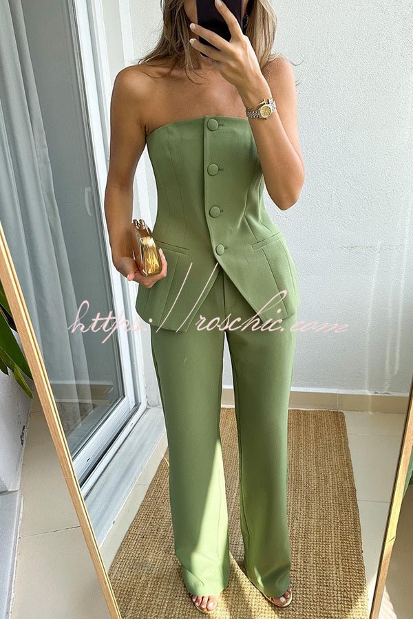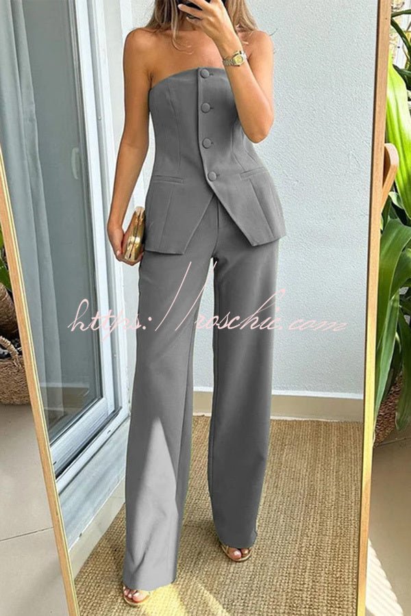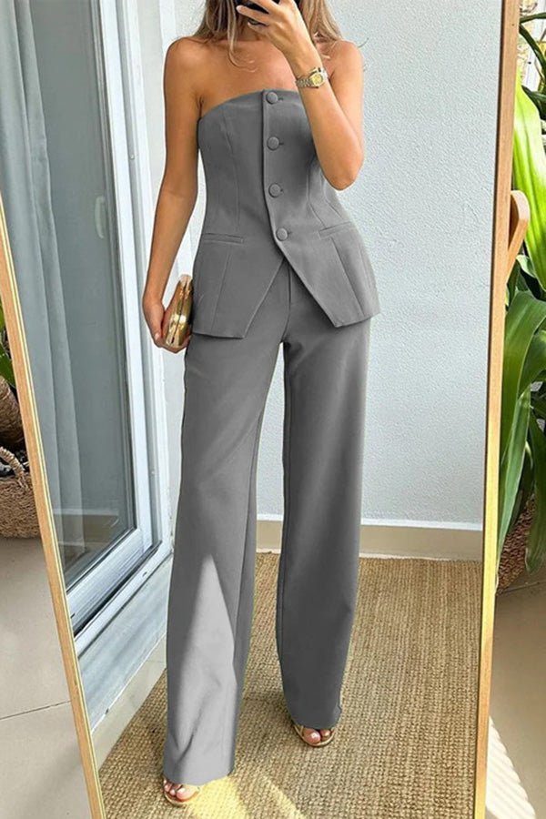 Extra Dose of Confidence Off Shoulder Button Top and Straight Pants Set