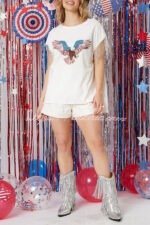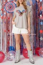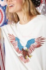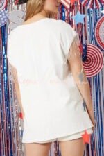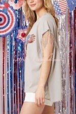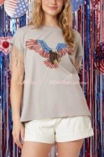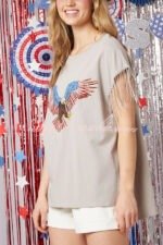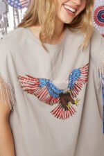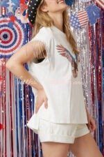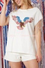 Extraordinary American Eagle Print Rhinestone Tassel Short Sleeve T-Shirt