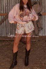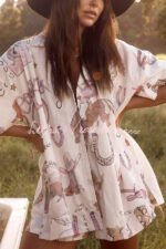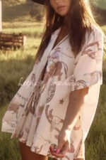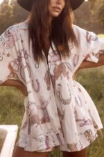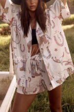 Eye-Catching Western Print Linen Blend Outfit for Women