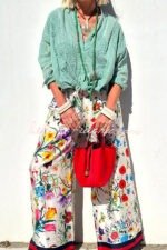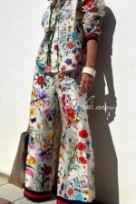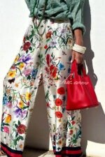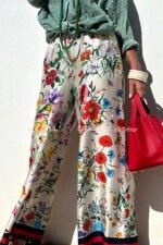 - Made from high-quality materials and designed with attention to detail. these pants are sure to be a staple in your wardrobe for years to come. Featuring a wide-leg silhouette. printed fabrics and a comfortable fit. it exudes undeniable style and sophistication.