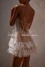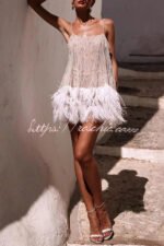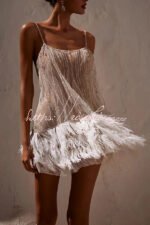 Fairy Lights Sequin Layered Feather Fringed Mesh Mini Dress