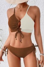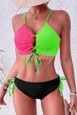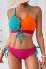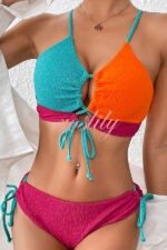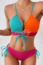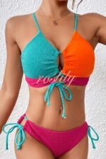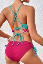 Fashion Contrast Color Sexy Cross Strap Stretch Two Piece Bikini Swimsuit
