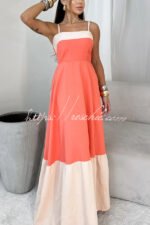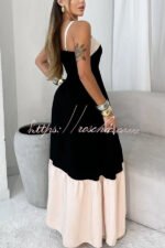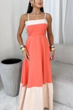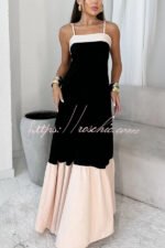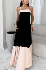 Fashionable Contrast Color Stitching Sling Maxi Dress