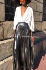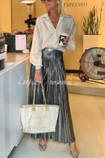 Fashionable Metallic Pleated Back Elastic Waist Maxi Skirt