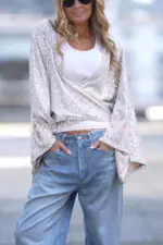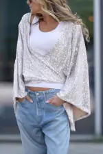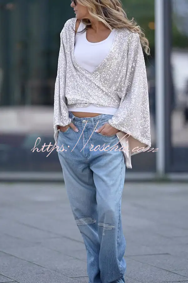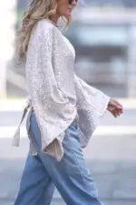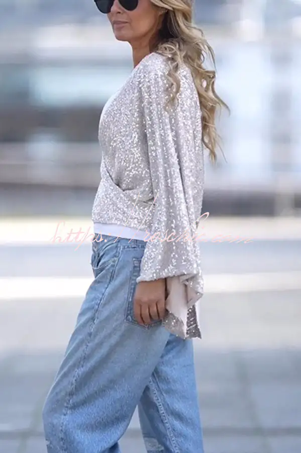 Feel The Charm Sequins Wrap Tie-up Bell Sleeve Top