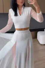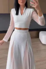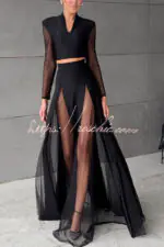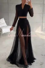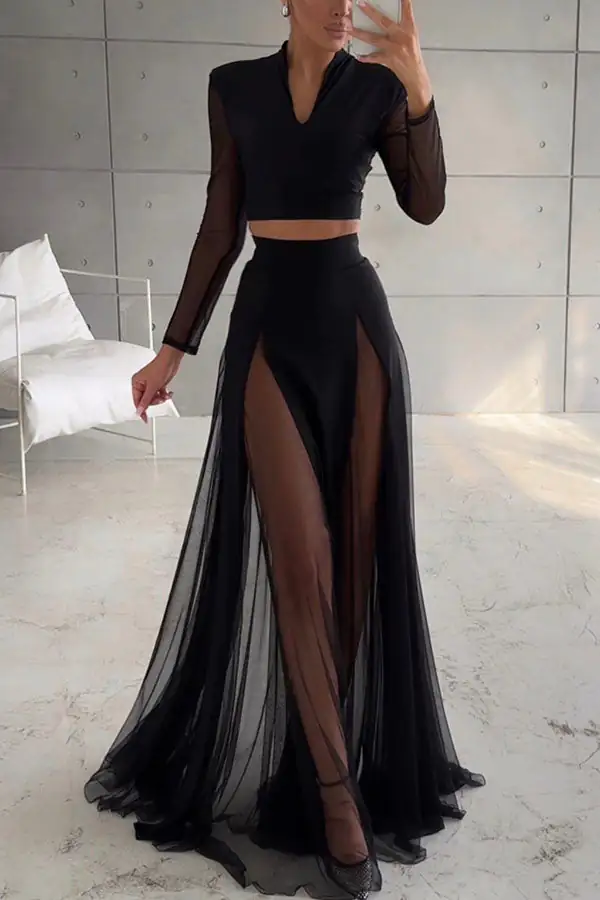 Feeling Chic Mesh Long Sleeve Crop Stretch Top