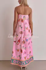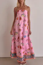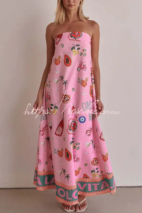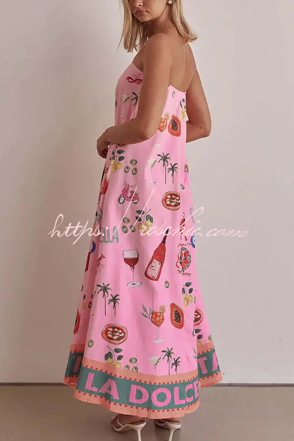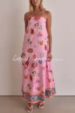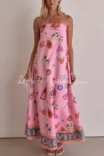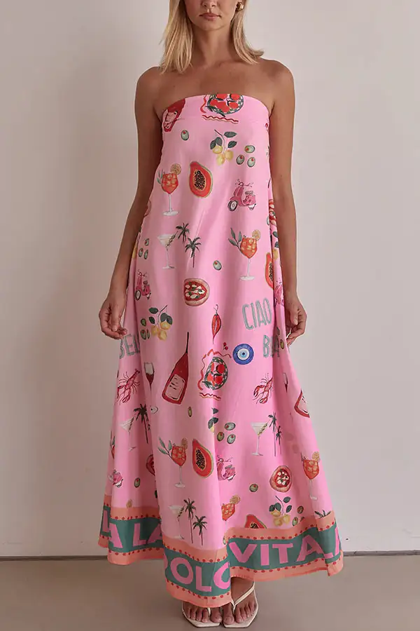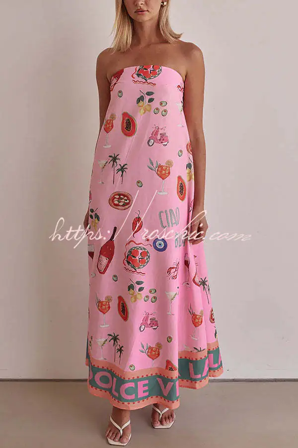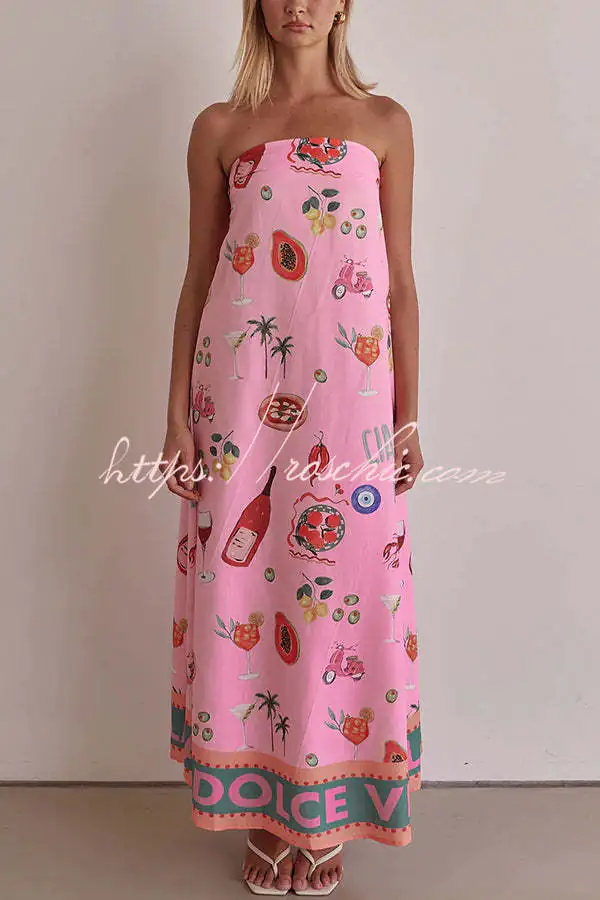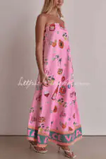 Feeling Fun Linen Blend Unique Print Off Shoulder Loose Maxi Dress