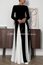 Getting Glam and Elegant Panelled Tulle Long Sleeve A-line Maxi Dress