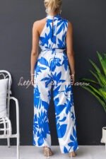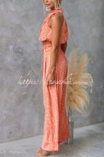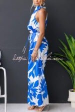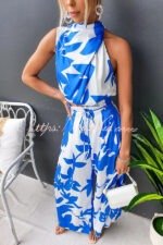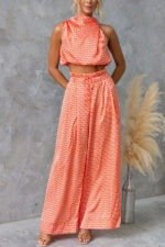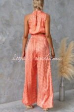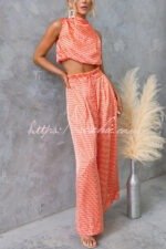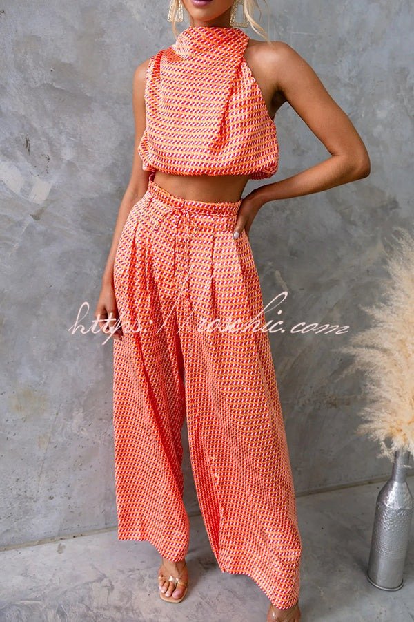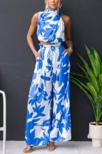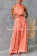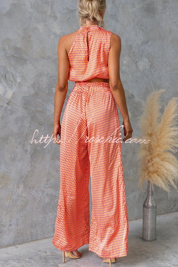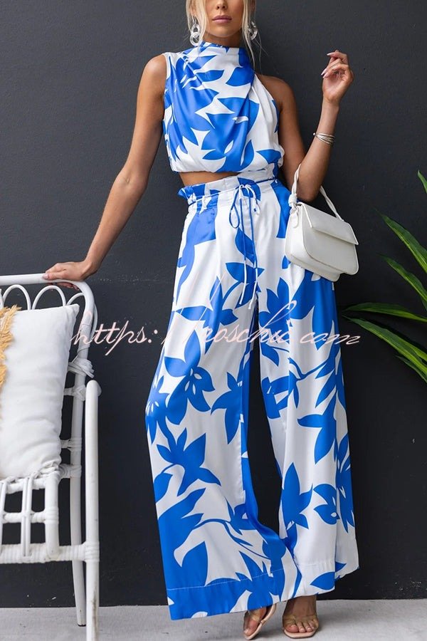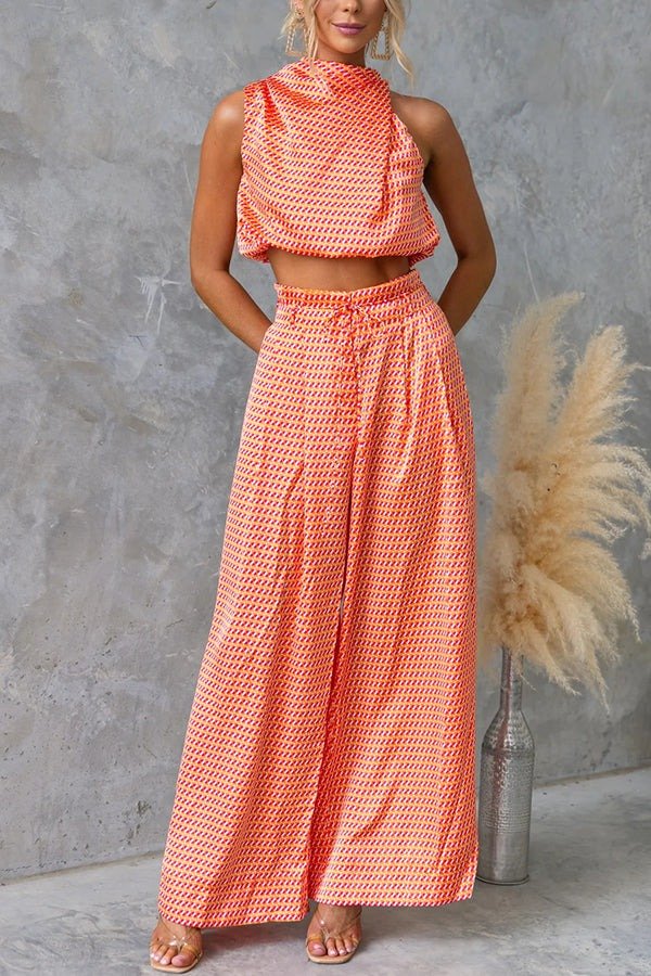 Girls Night Satin Printed High Neck Top and Elastic Tie-up Waist Pocket Wide Leg Pants Set