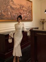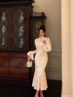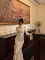 Gorgeous Mermaid High Neckline Ivory Satin Date Night Dress Prom Dresses Birthday Outfits SD1098