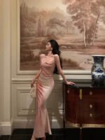 Gorgeous Mermaid Spaghetti Straps Pink Floral Date Night Dress Prom Dresses Birthday Outfits SD1097
