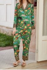 Green Constellation Printed Home Long Sleeved Two-piece Set