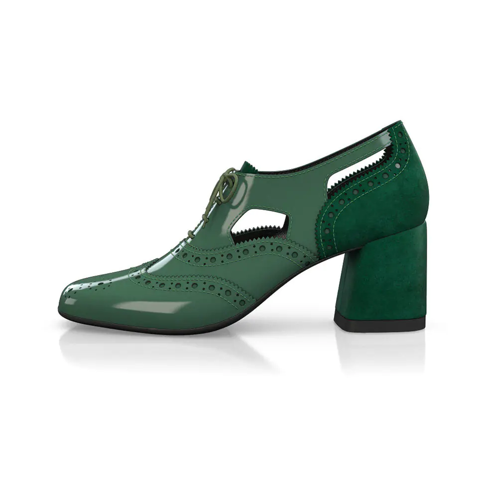 Green Square Toe Patent Leather & Vegan Suede Oxford Heels for Women