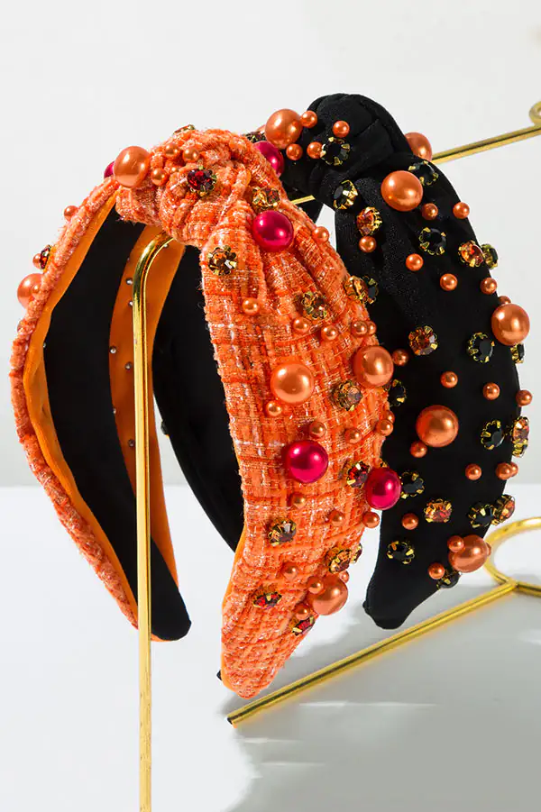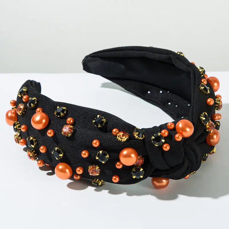 Halloween Fabric Knotted Diamond and Pearl Hair Accessories