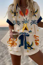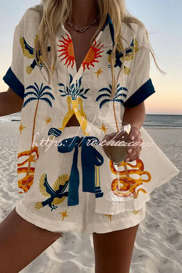 Holiday Print Loose Button Elastic Waist Shorts Set