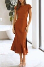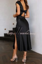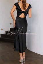 Ivana Satin Twist Back Cutout Midi Maxi Dress