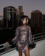 The Jemima Metallic Mini Dress is designed to turn heads and make a bold statement. Crafted from shimmering fabric. this dress features a flattering fit that accentuates your curves while ensuring comfort. Perfect for nights out or special occasions. it adds a touch of glamour to your wardrobe.
