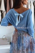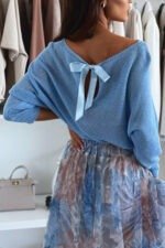 Jodie Knit Back Satin Bow Wide Neck Relaxed Sweater