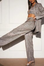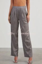 Jordyn Metallic Hidden Zip Button Pocket Pants