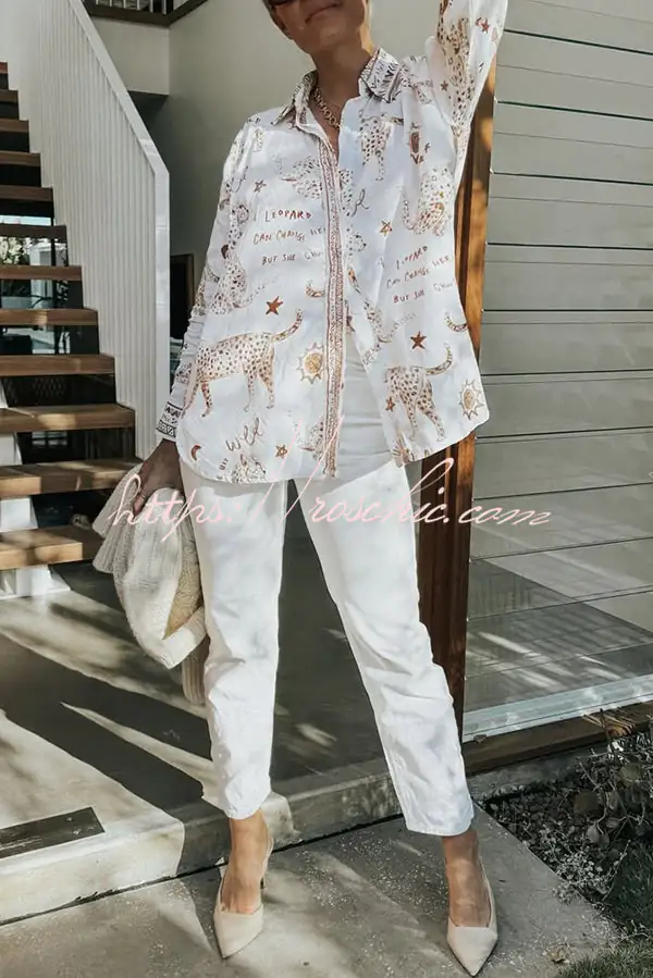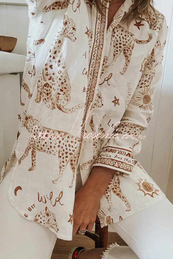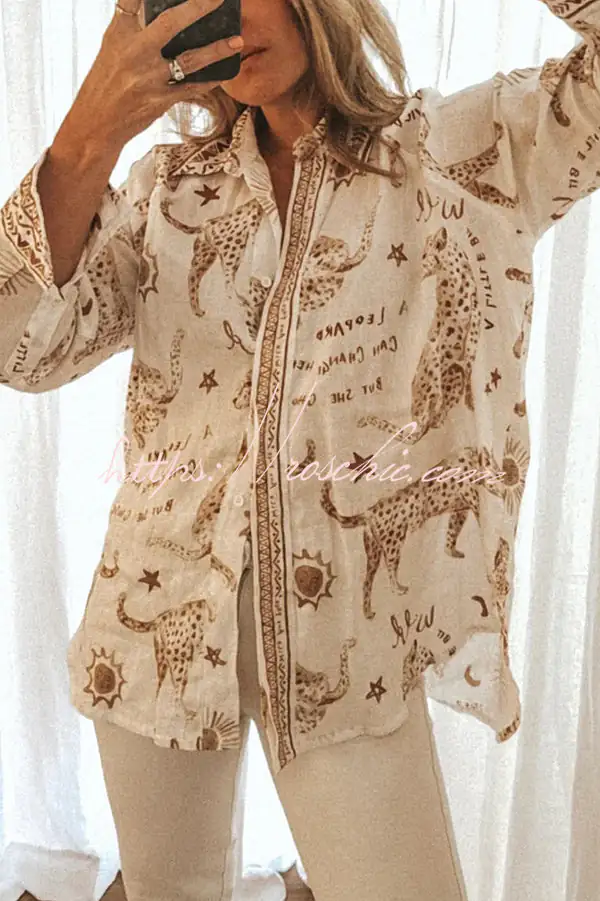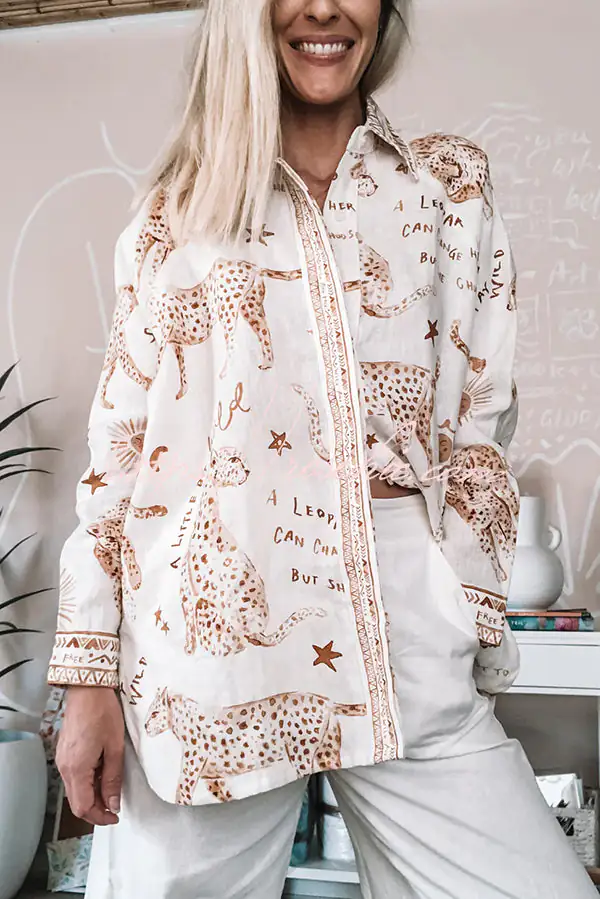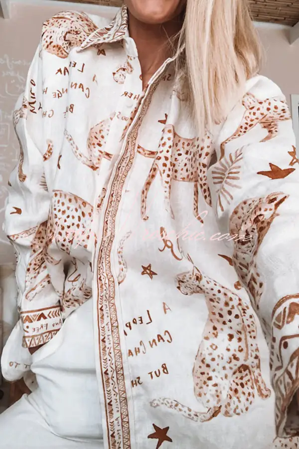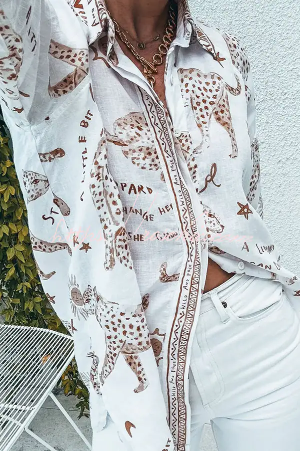 Jungle Leopard Print Loose Long Sleeve Casual Shirt