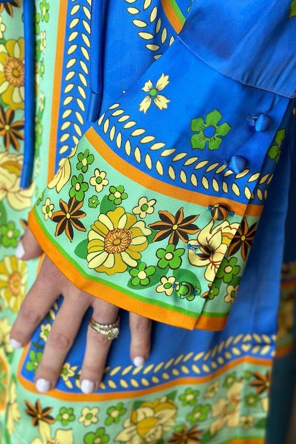 Somewhere Sunny Satin Botanical Print Short Sleeve Button Oversized Blouse