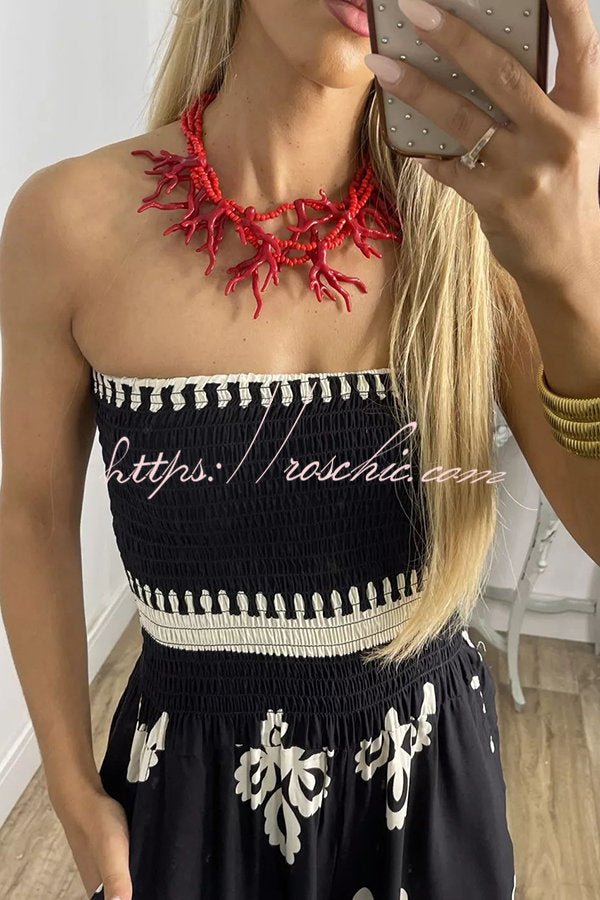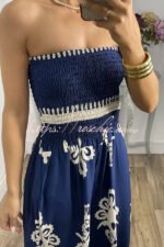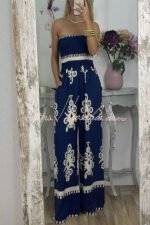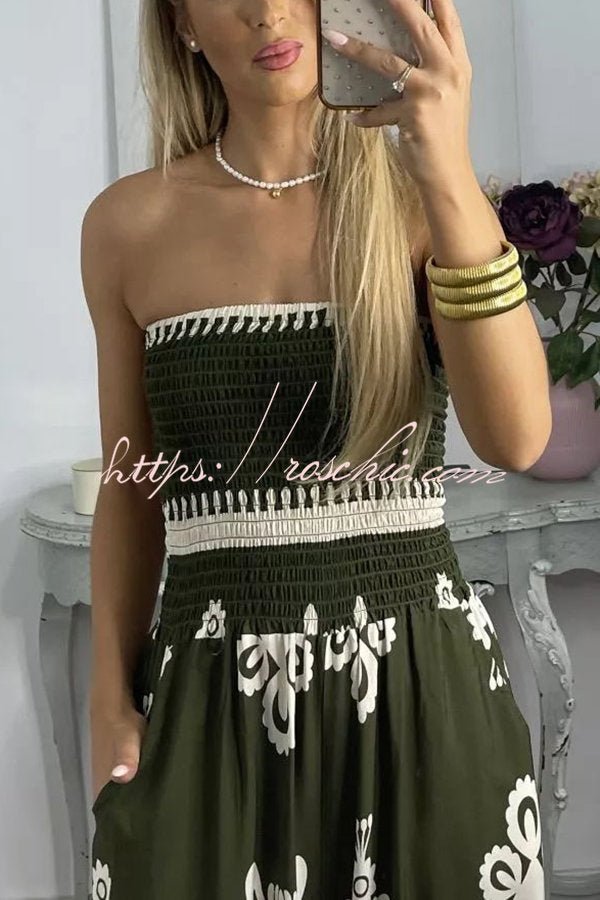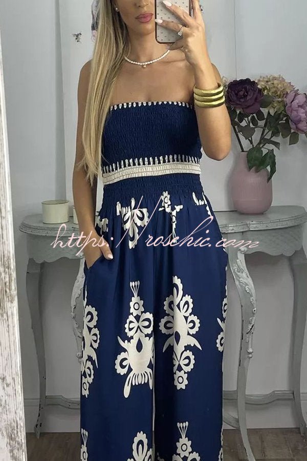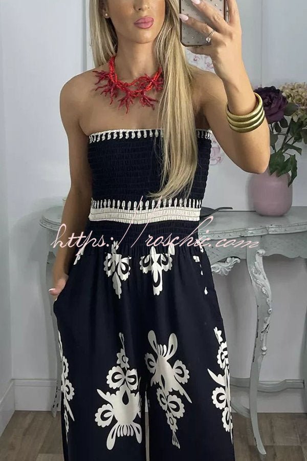Larsen Ethnic Print Off Shooulder Smocked Bust Pocketed Jumpsuit